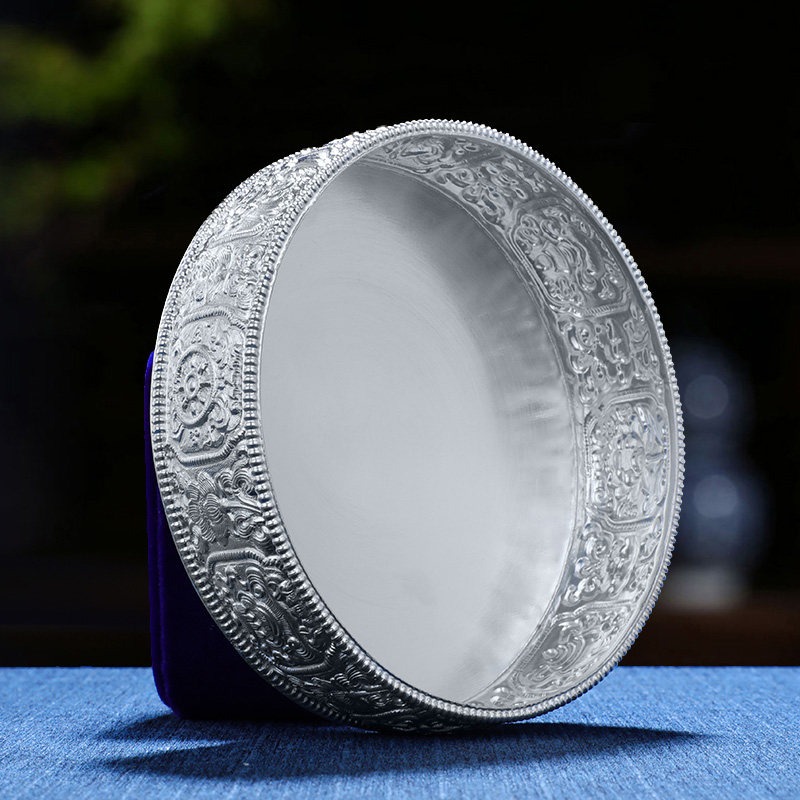 Manza Pan Pure Silver Handmade Manda Dish HIDDEN EIGHT AUSPICIOUS MAN TEA ROE IMITATION NEPAL FOR MANZA TRAY 10cm-Taobao