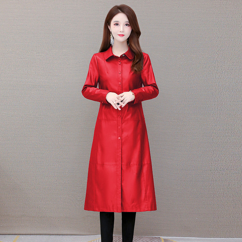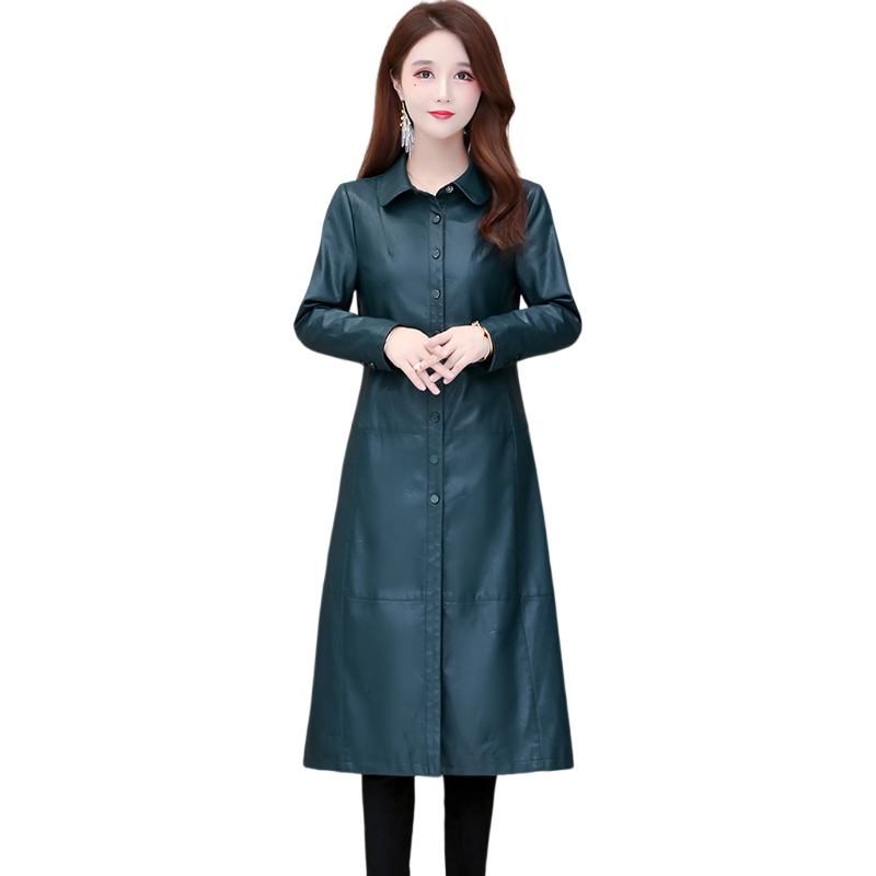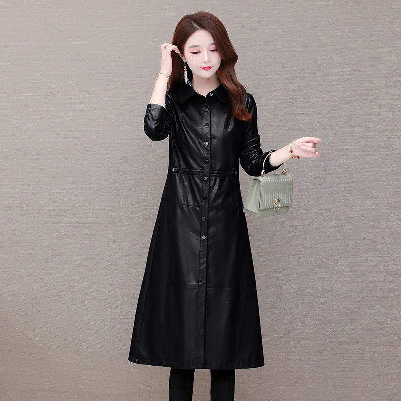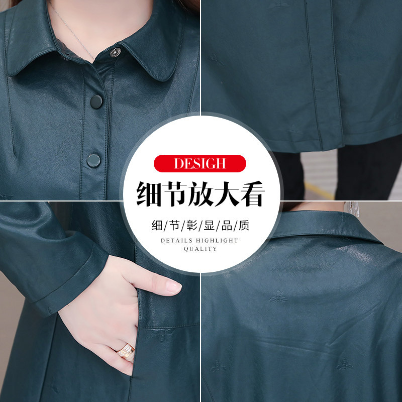 Leather jacket women's spring and autumn 2021 new Korean version loose temperament medium and long version PU leather motorcycle windbreaker coat
