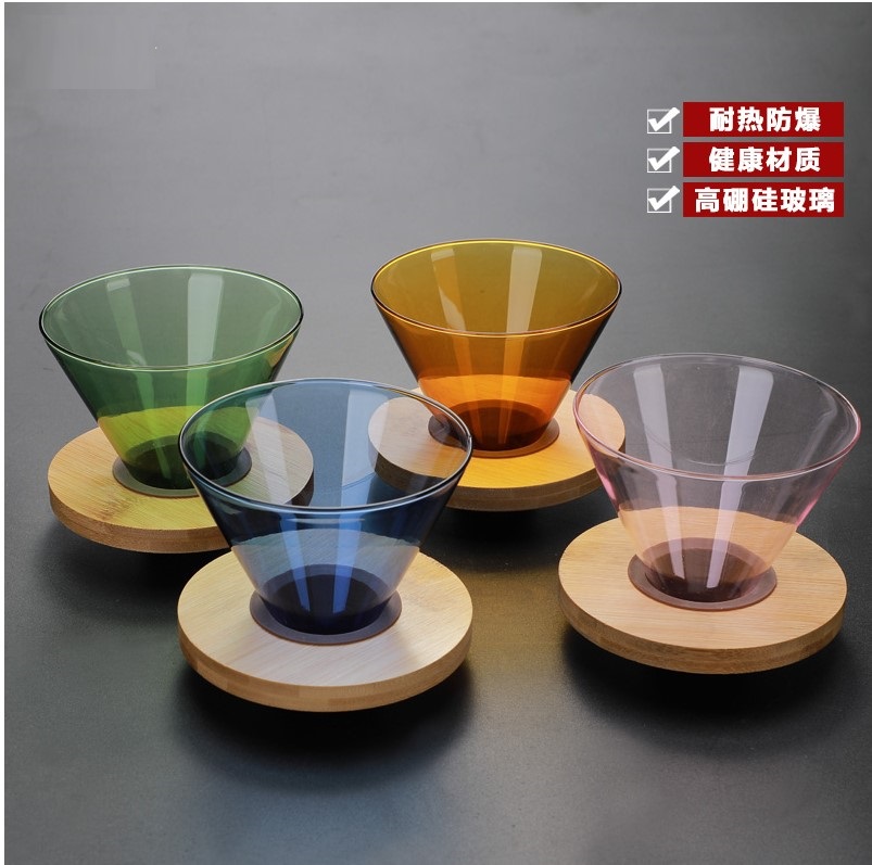 Household hand-brewed coffee filter cup color heat-resistant glass filter paper cup log base drip filter