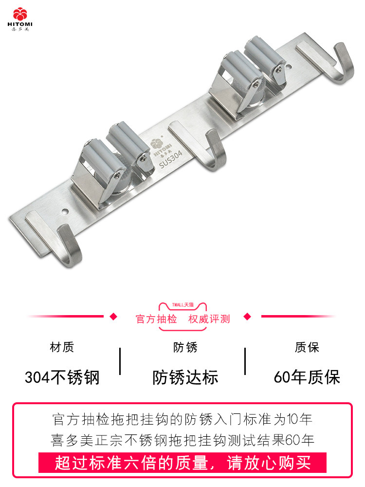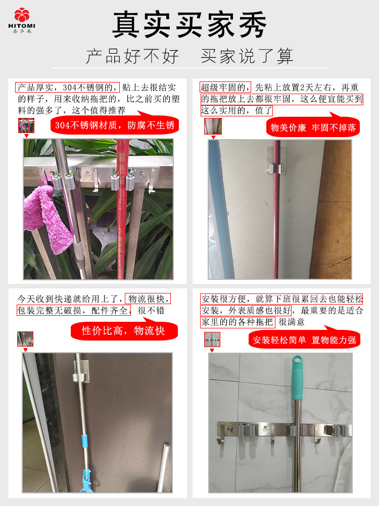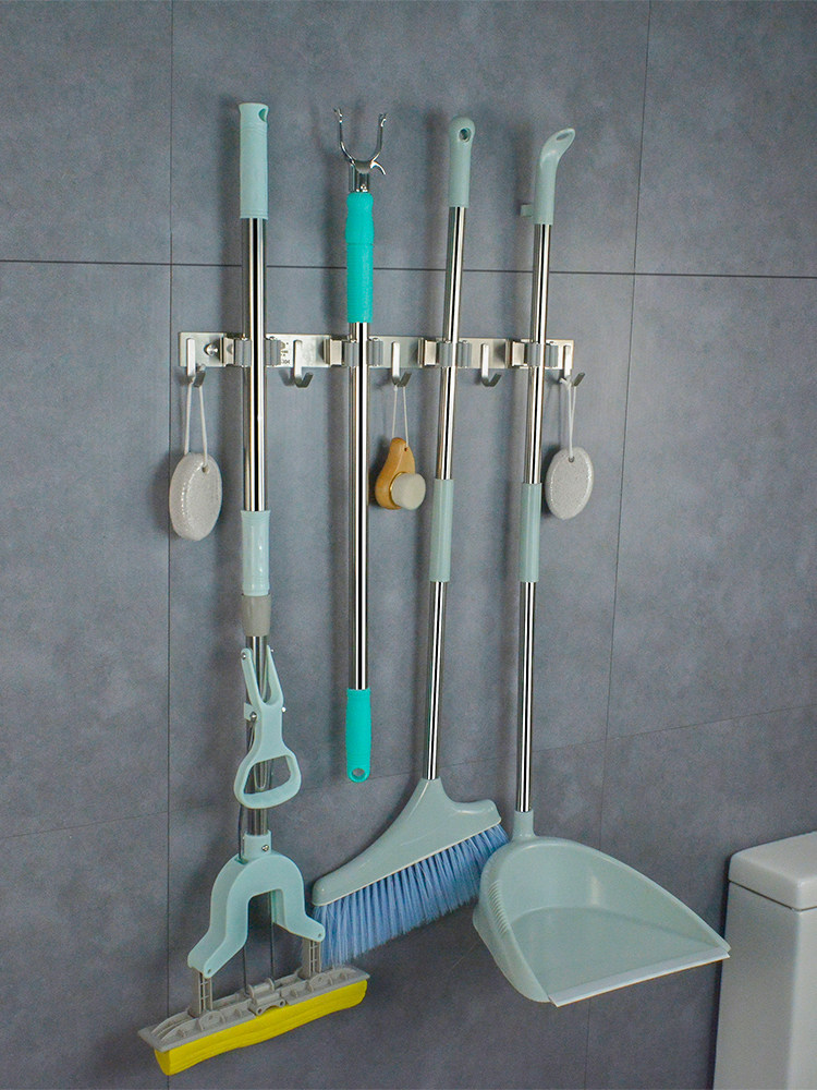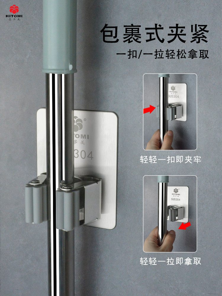 Mop hook non-perforated stainless steel mop rack broom rack dressing room mop hook artifact mop clip wall hanging
