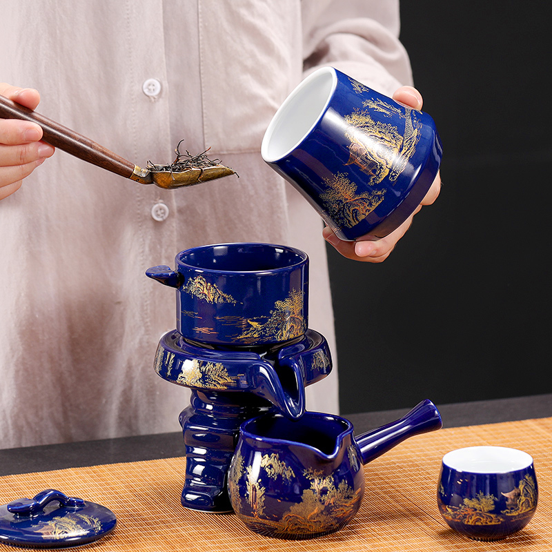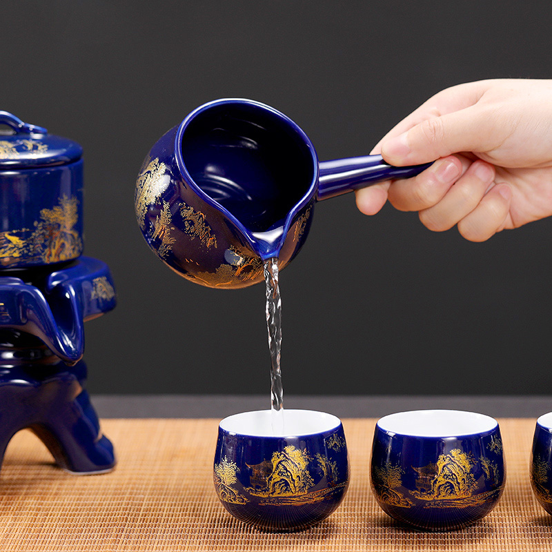 10 head blue depiction gold automatic tea set Tea ceremony Six gentlemen Tea can tea wash 10 head blue depiction gold automatic tea set 10 head blue depiction gold automatic tea set Tea ceremony Six gentlemen 10 head blue blue