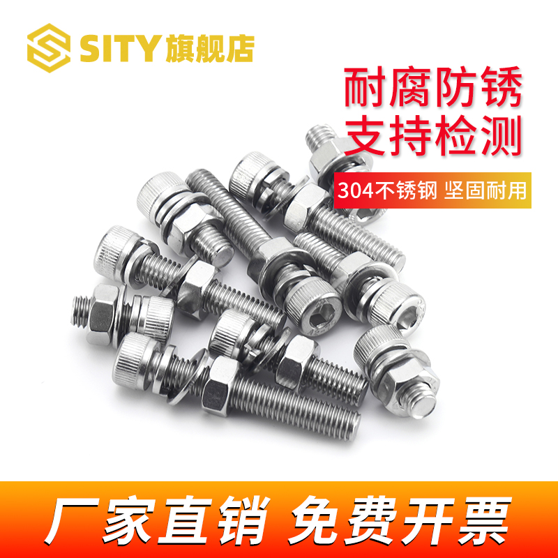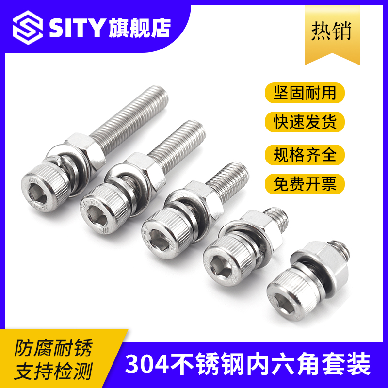 M8M10 304 stainless steel hexagon socket cap screw nut set Daquan bolt combination screw with flat pad spring pad