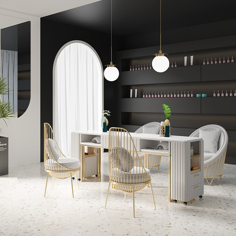 Nordic soft package double marble manicure table and chair set net red sofa chair multi-function special offer golden manicure table