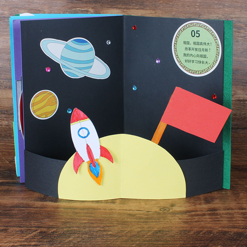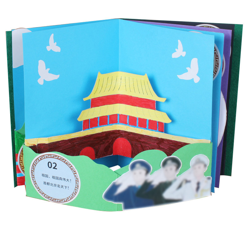 Children's National Day three-dimensional book diy homemade picture book handmade primary school students patriotic 3D production material package kindergarten