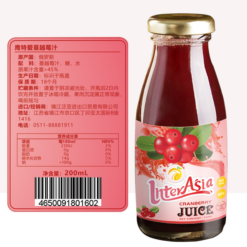 Yingteai NFC cranberry juice pregnant woman freshly squeezed non-concentrated Russian imported beverage small bottle full box of 6 bottles