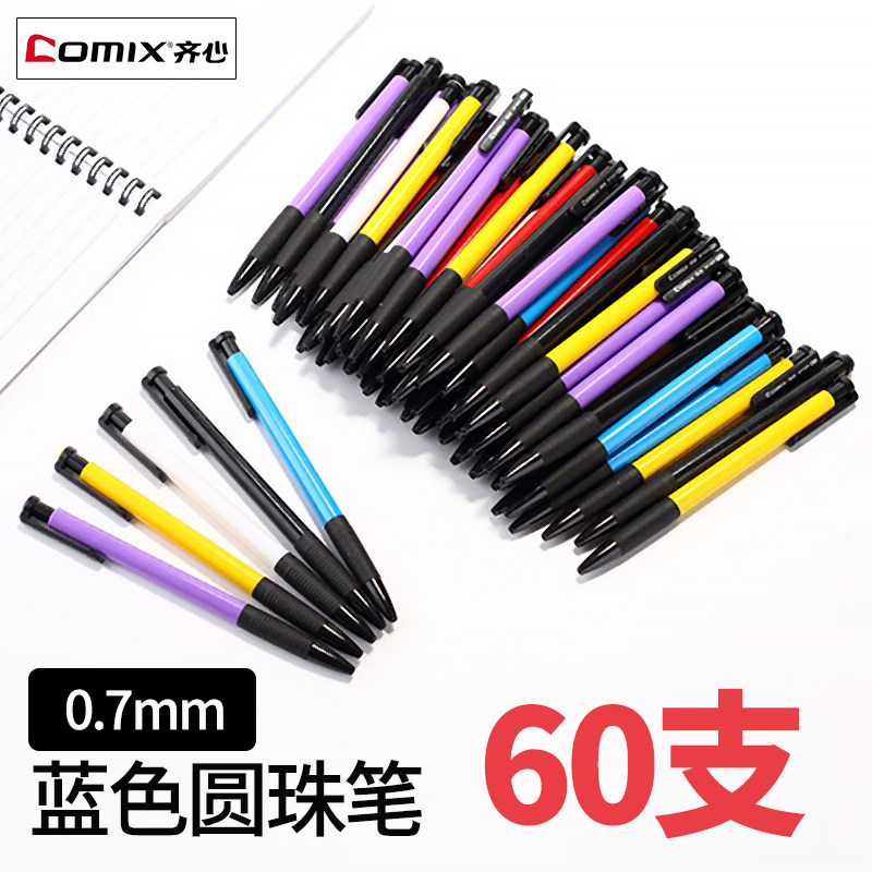 Qixin 120 ballpoint pen press type oil pen student dedicated cute creative cylindrical pen vintage blue 0.7 bullet refill oil office business press atom pen wholesale
