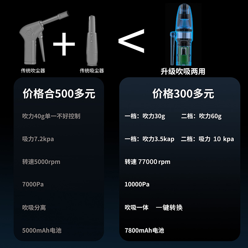 Collection cart Black blown suction One (7 70 thousand rev ten thousand Pa suction black-dust collector 6000 mAh 500N blow force blue-dust blower (6000 mAh 50N blow force black