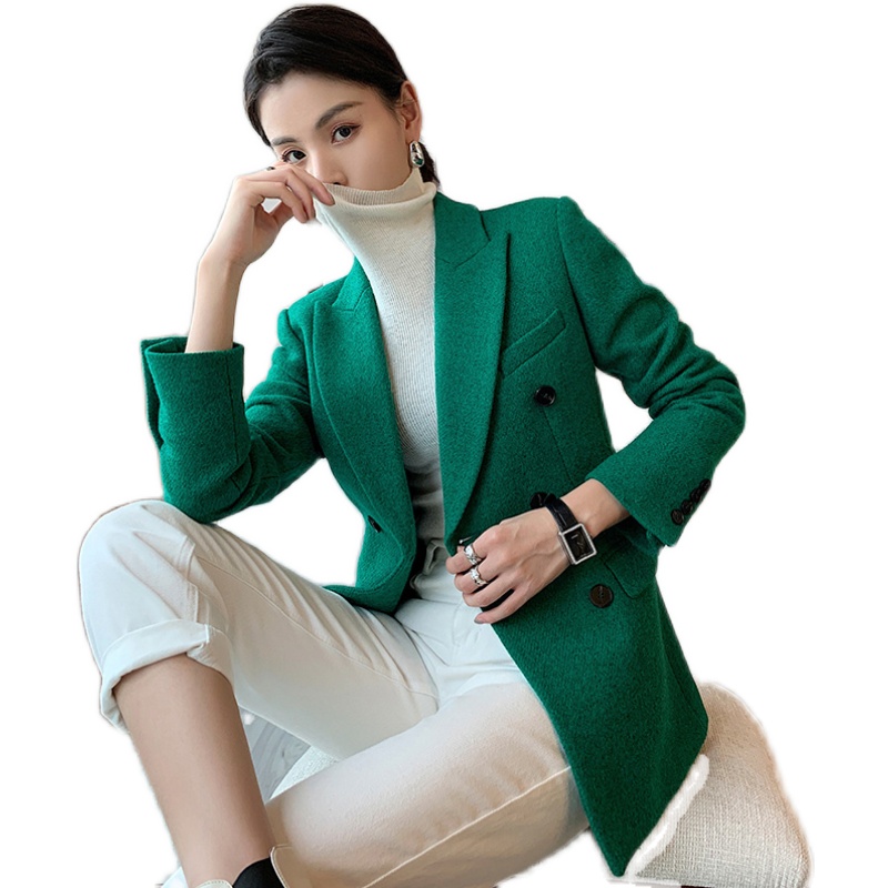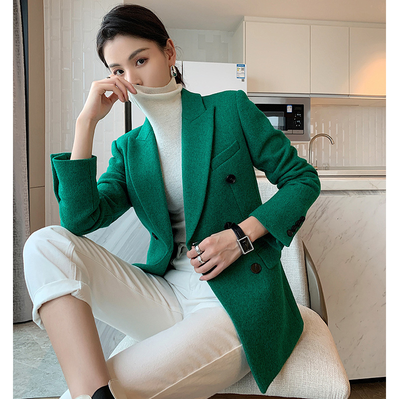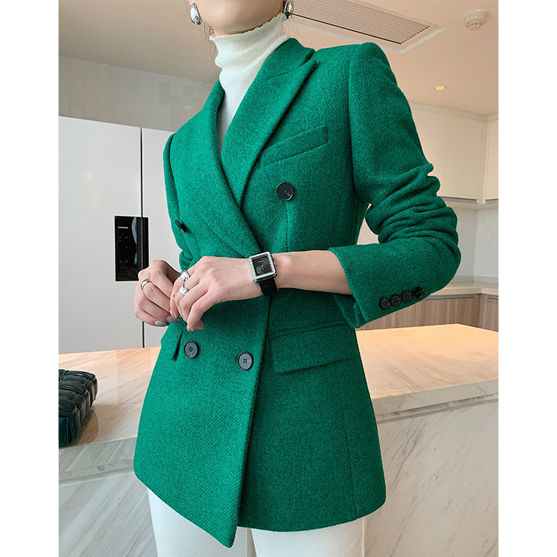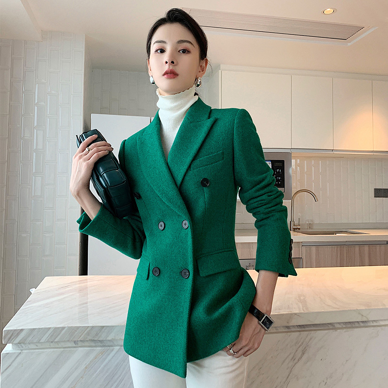 YIMU green wool suit jacket women's design sense niche high-end sense woolen slim fit waist temperament top thick