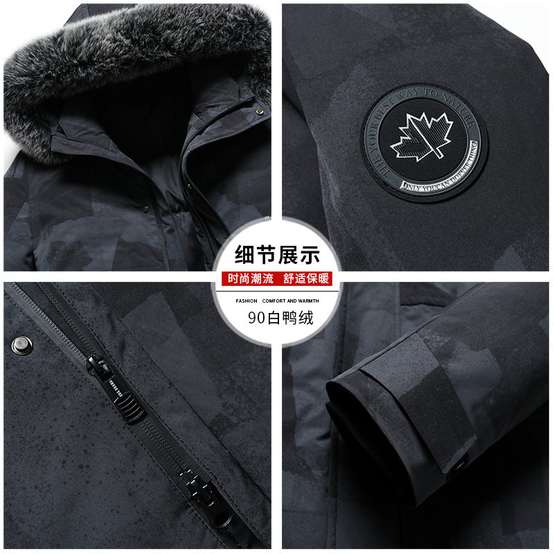 Jadeer Down Suede Suit Men's Medium Long Version Camouflate Thickened Fox Fur Collar Loose Winter Dress 2021 New Casual D