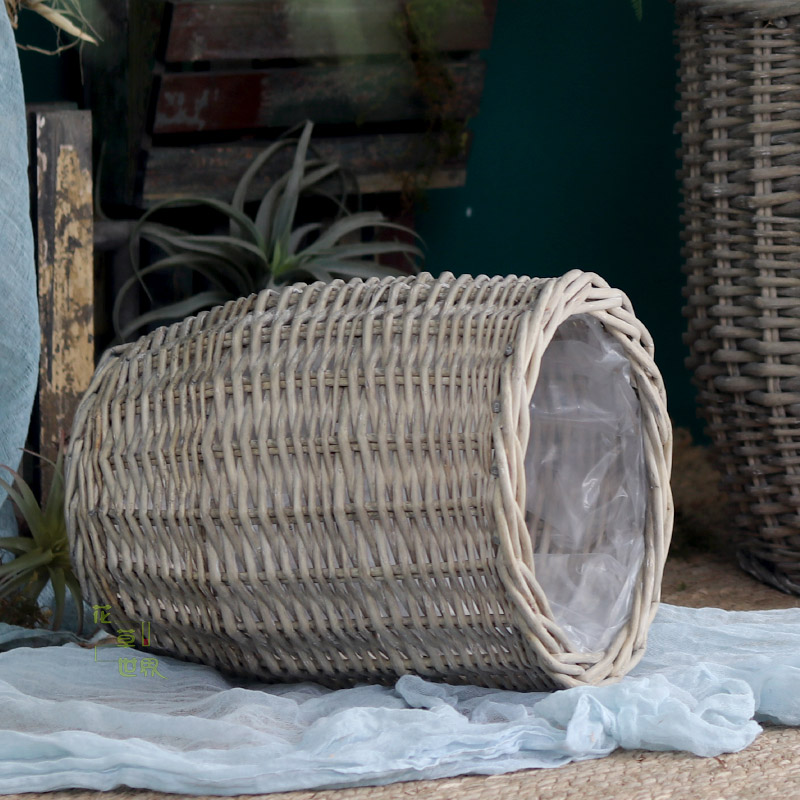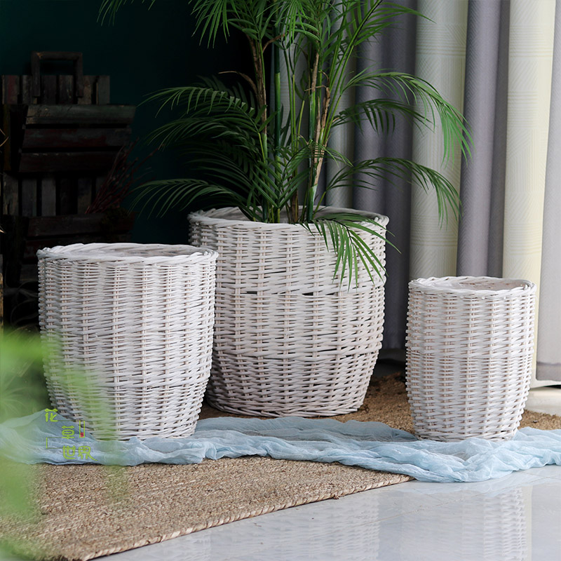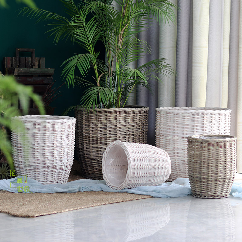 Rattan choreography braiding the floor large flower pot woven flower basket fields garden retro garden decorative pendulum with green plant large covered basin