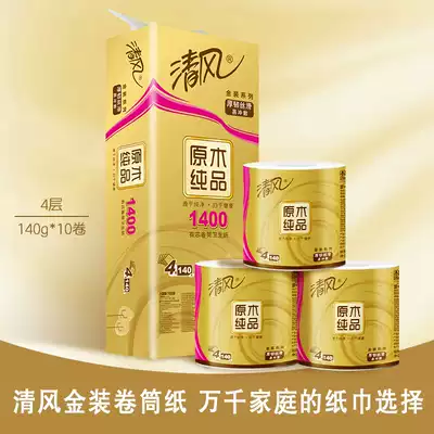 Breeze roll paper toilet paper 4 layers 140g 10 rolls household affordable toilet paper napkins Large roll paper toilet paper