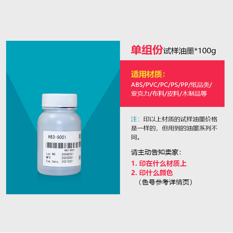 Screen test ink 100g vial self-drying pad printing metal PVC glass plastic PP ceramic UV fabric ABS