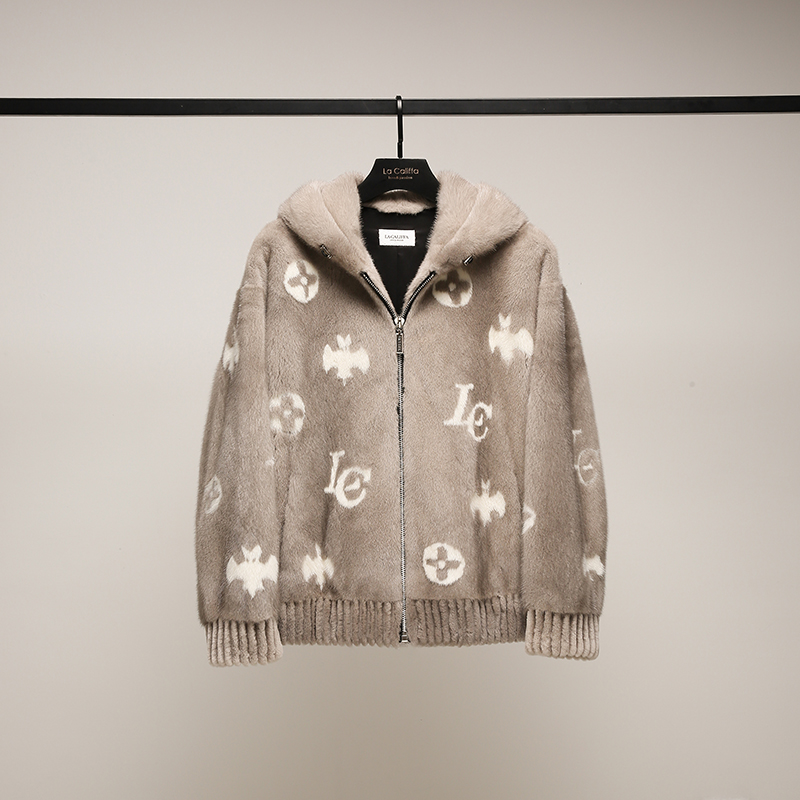 LA CALIFFA "Copenhagen imported little female mink" casual short hooded men's fashion jacket