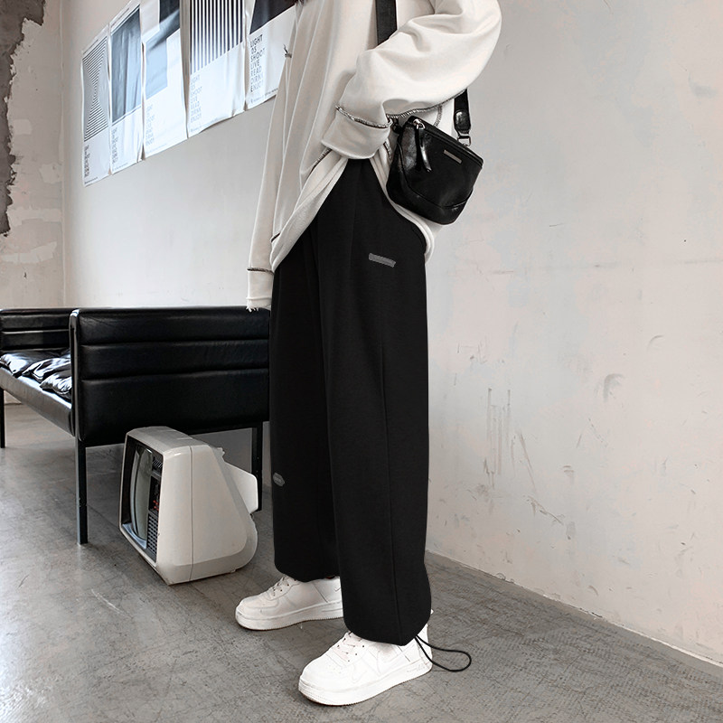 South Korean summer thin grey sweatpants for women with loose legs and high waists, straight and drape, show the trend of skinny sweatpants on Instagram