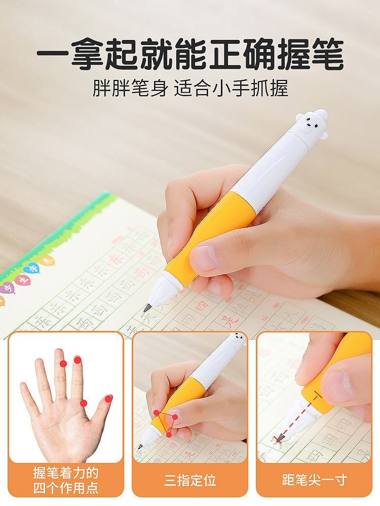Wusheng Bear posture pen Children's pen holder corrector Primary school students kindergarten pen grip posture automatic lead 2 0 pen corrector First grade beginners grab pen to write with pen correction artifact