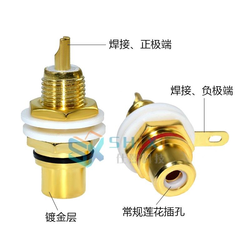 8 grain loading rca lotus female socket audio sound power amplifier plated gold lotus female seat terminal AV lotus plug red black