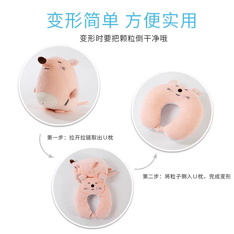Multifunctional dual-purpose pillow for men and women u-shaped neck guard cartoon pillow doll foam particle filler deformation pillow