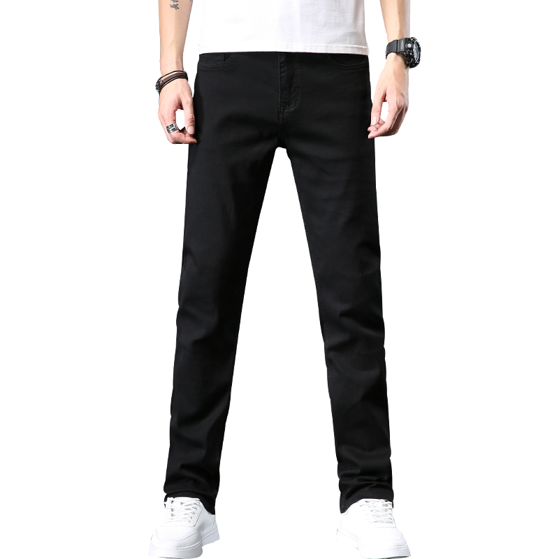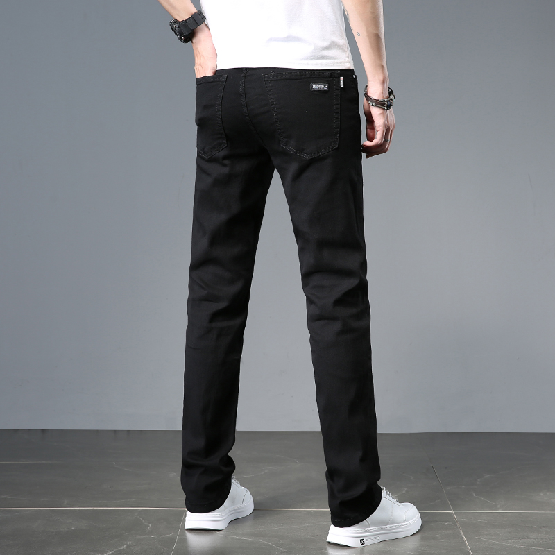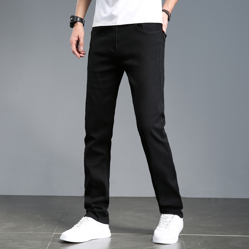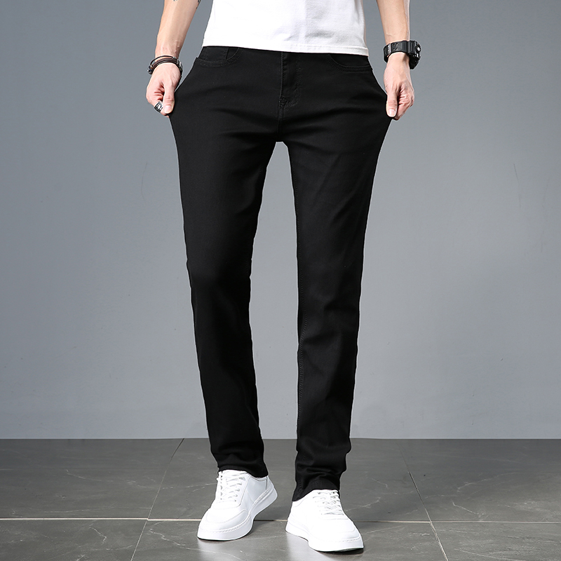 Summer thin black jeans men's straight slim men's pants Stretch casual pants Dark ultra-thin men's pants