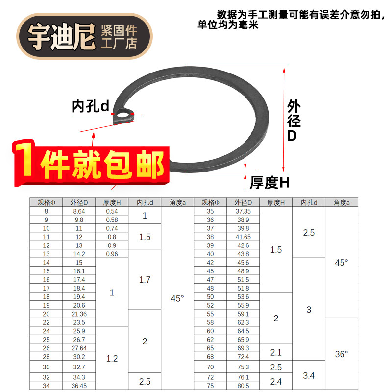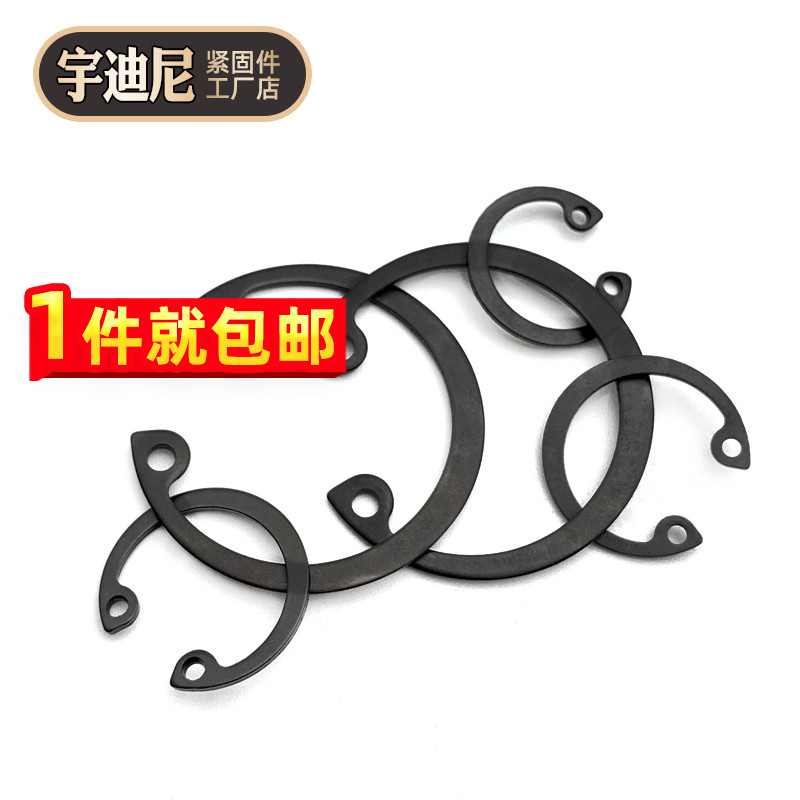 GB893 C-type buckle for 1 hole, elastic blackened 65MN manganese steel inner circlip, spring steel and hardened black A type