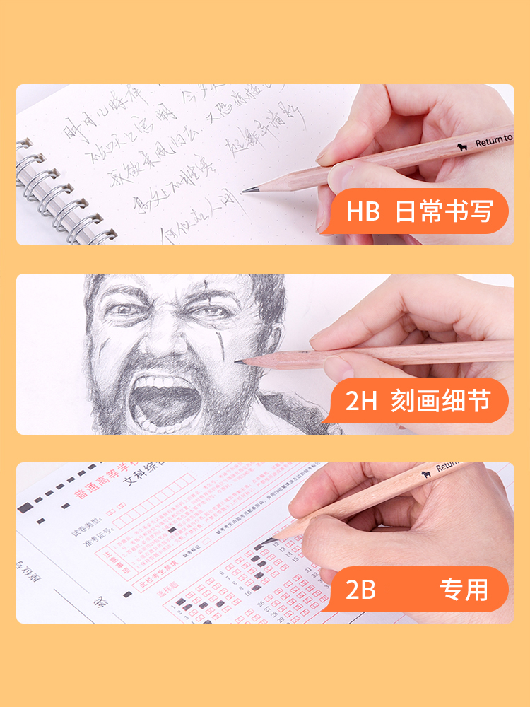 Powerful pencil pupils 2B pencil quiz answer card special log barrel kindergarten children's triangle pencil safety HB pencil writing painting sketch pencil learning stationery