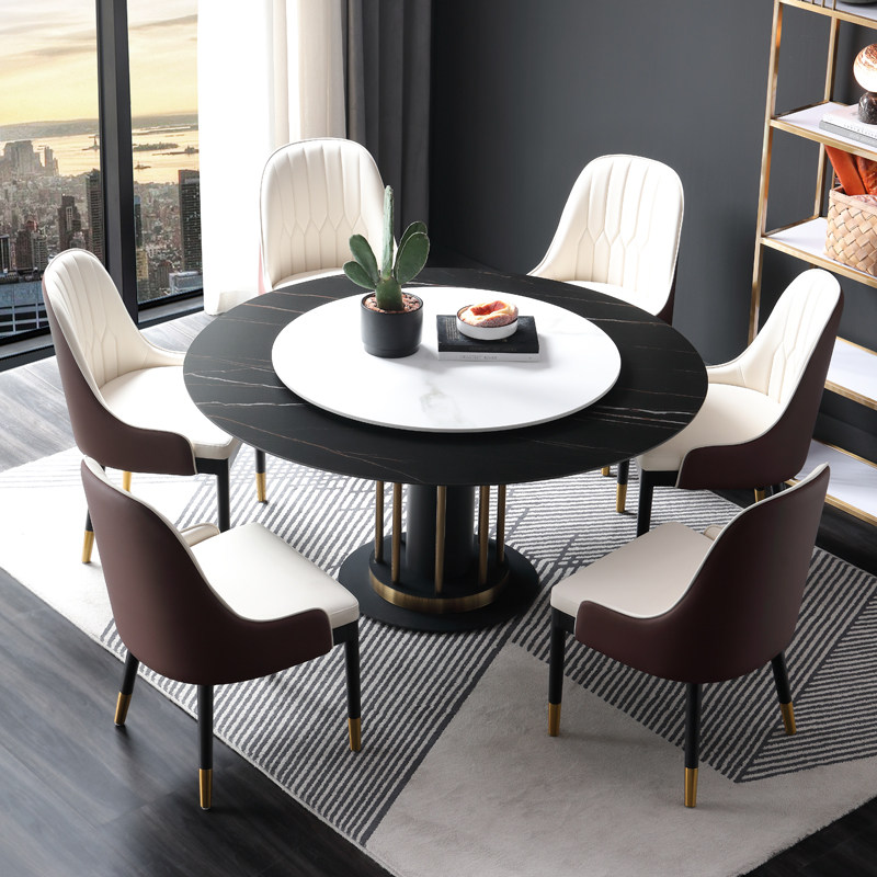 Italian Style Light Extravagant Round Rock Plate Dining Table And Chairs Combined Modern Minima small family dining room with turntable Home Dining Table