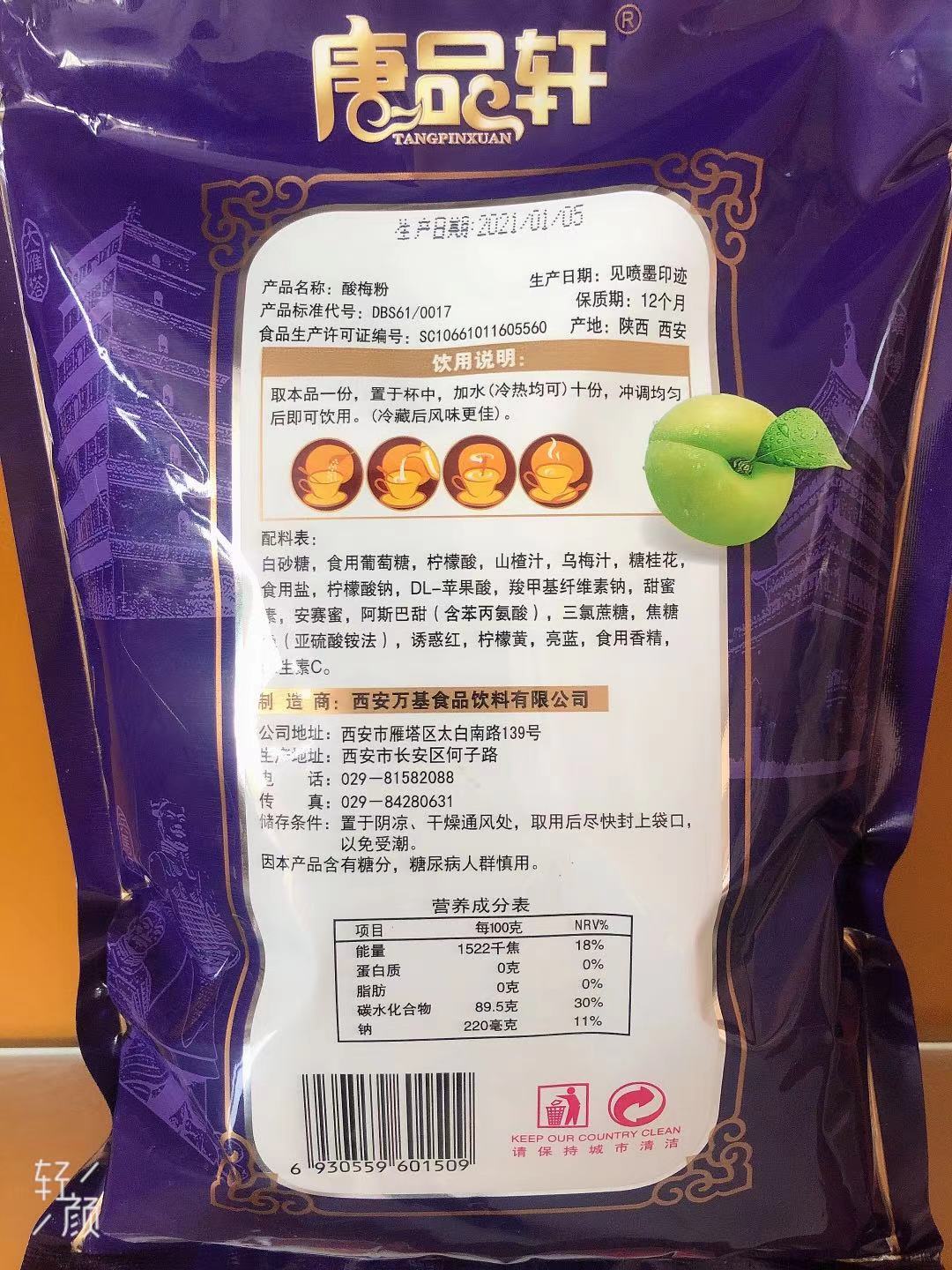 Tang Pinxuan Xi'an sour plum powder flushed drink commercial large bag of tea seabed bailing with sour plum soup powder for instant noodles