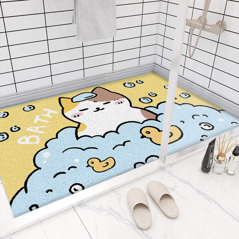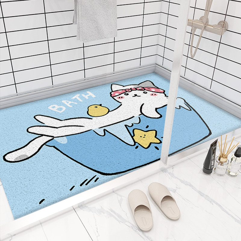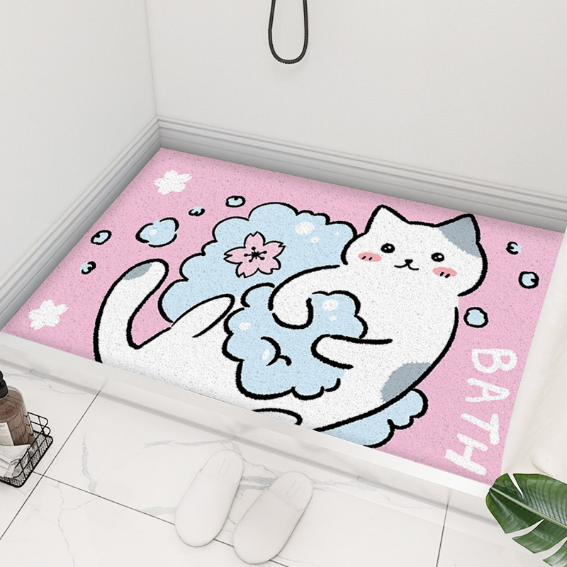Bath Cat Bath cat Bath cat Gray white cat line color block Moran color block Tri-color leaves Cute flowers Dark gray Dark purple Dark blue white pink purple
