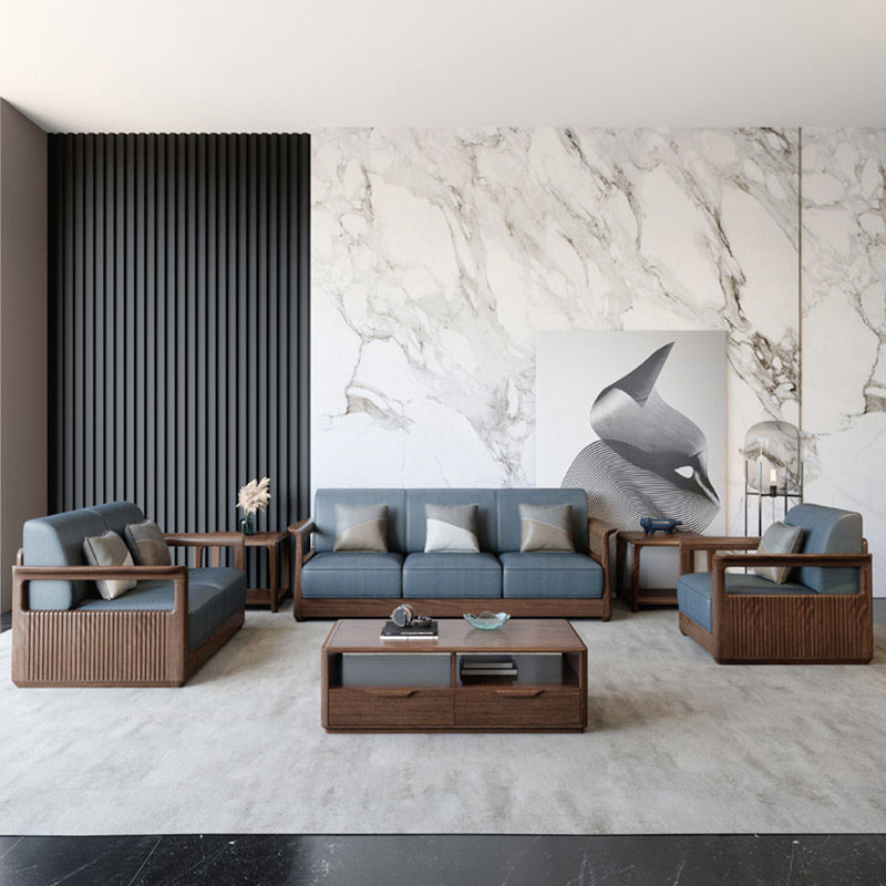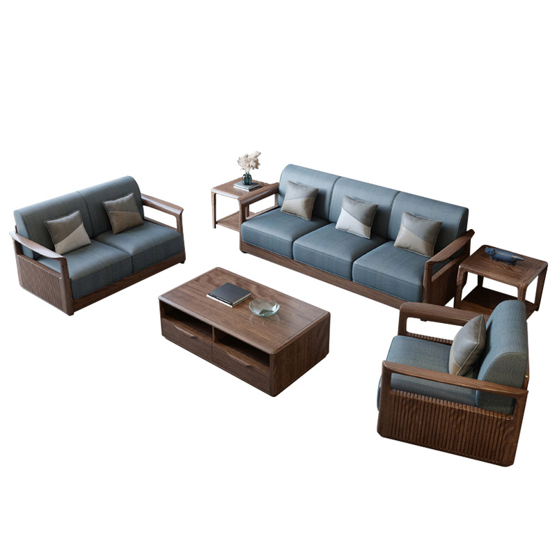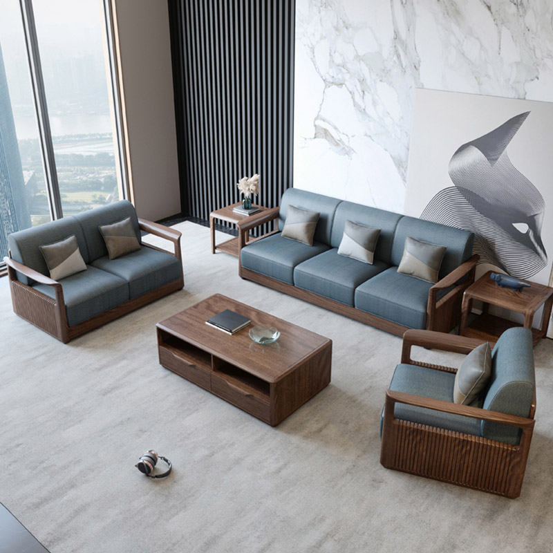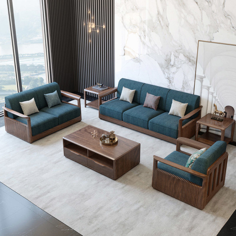 Walnut solid wood sofa 123 combination new Chinese living room pure wood modern minimalist light luxury storage sofa