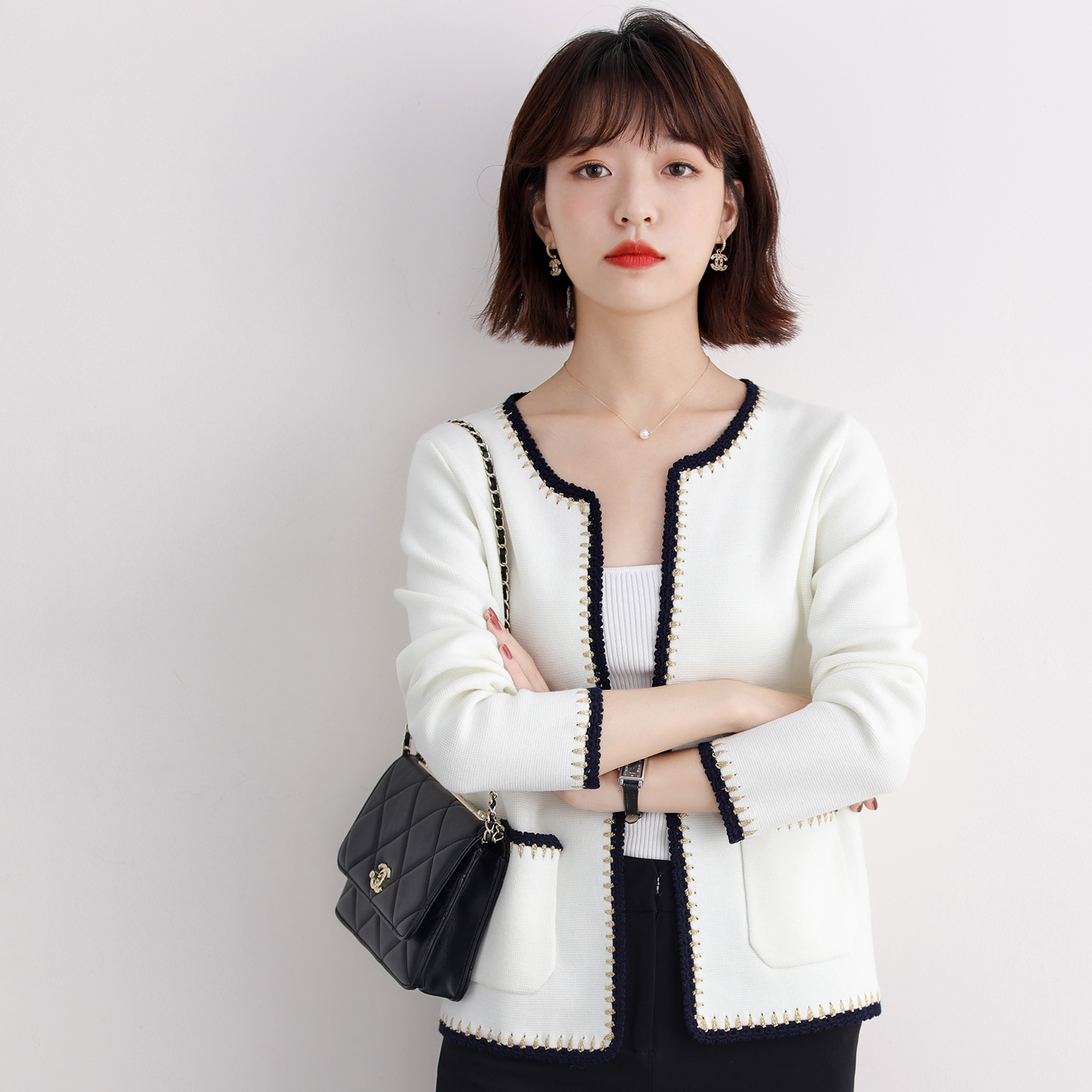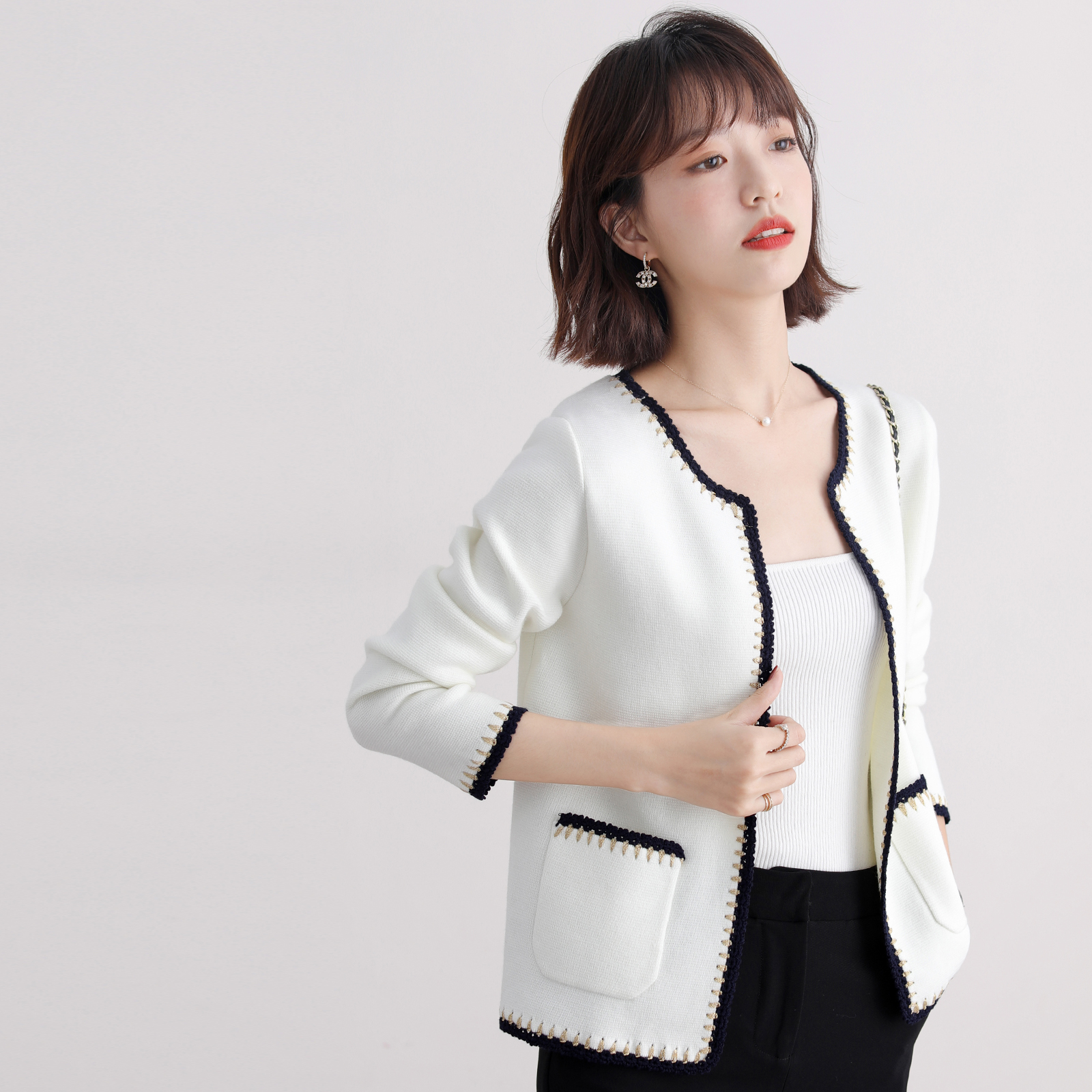 FENPERATE 2022 autumn and winter models elegant temperament high-end dark blue all-match cardigan knitted jacket for women
