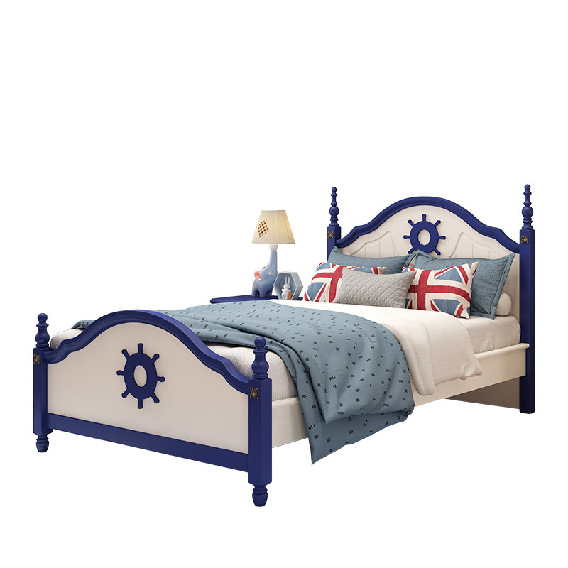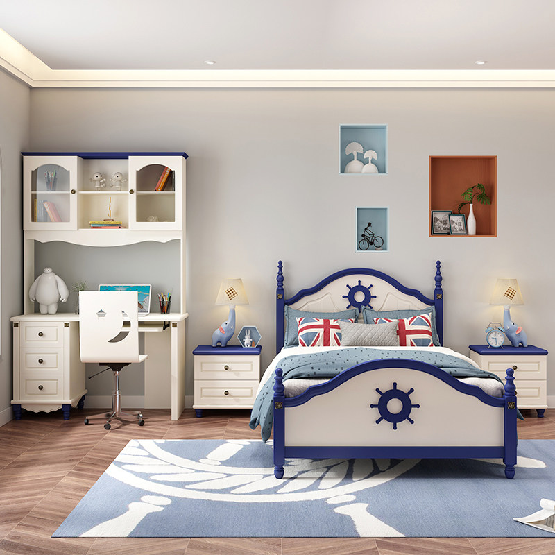 Mediterranean style children's room boys' bedroom solid wood furniture blue children's bed and wardrobe desk combination set