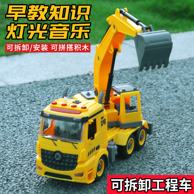 Engineering car suit (mixer truck excavator lift up the car for the crane) send back the force car to send the map dismantling and stirring car (the parable building blocks early to teach intellectual light music) to send back the force car to send the map