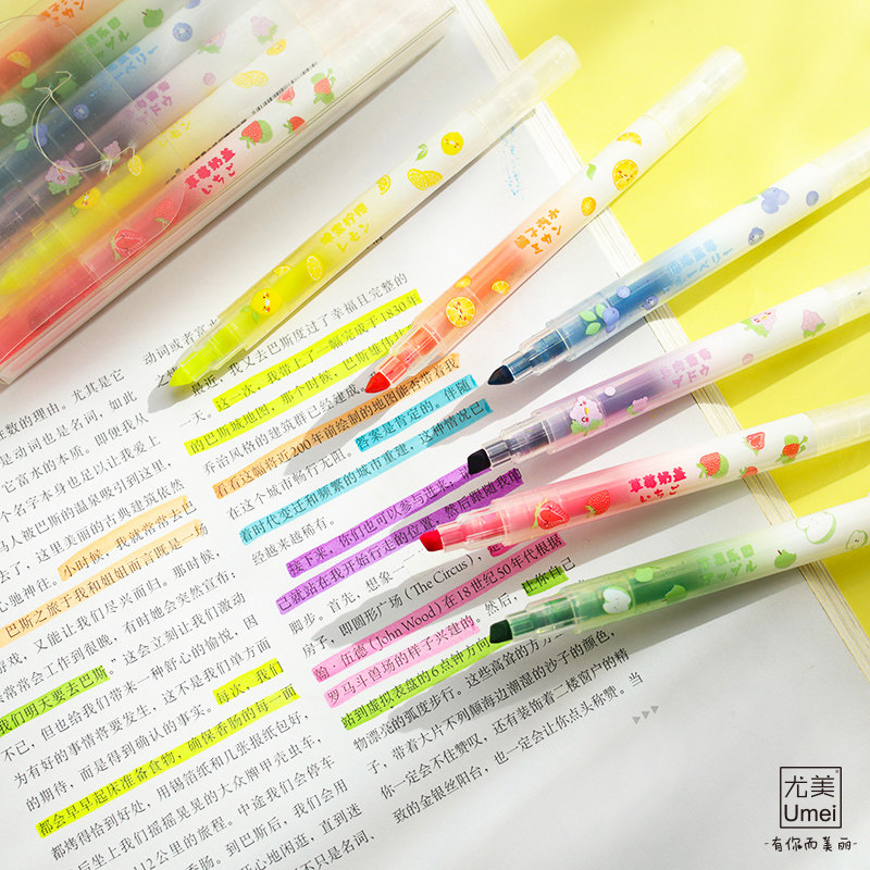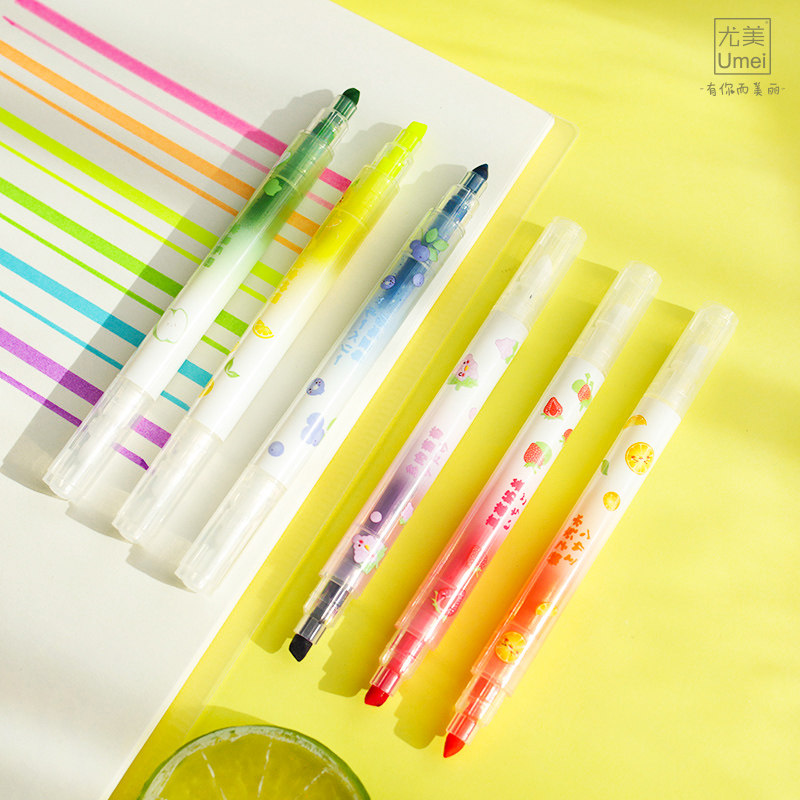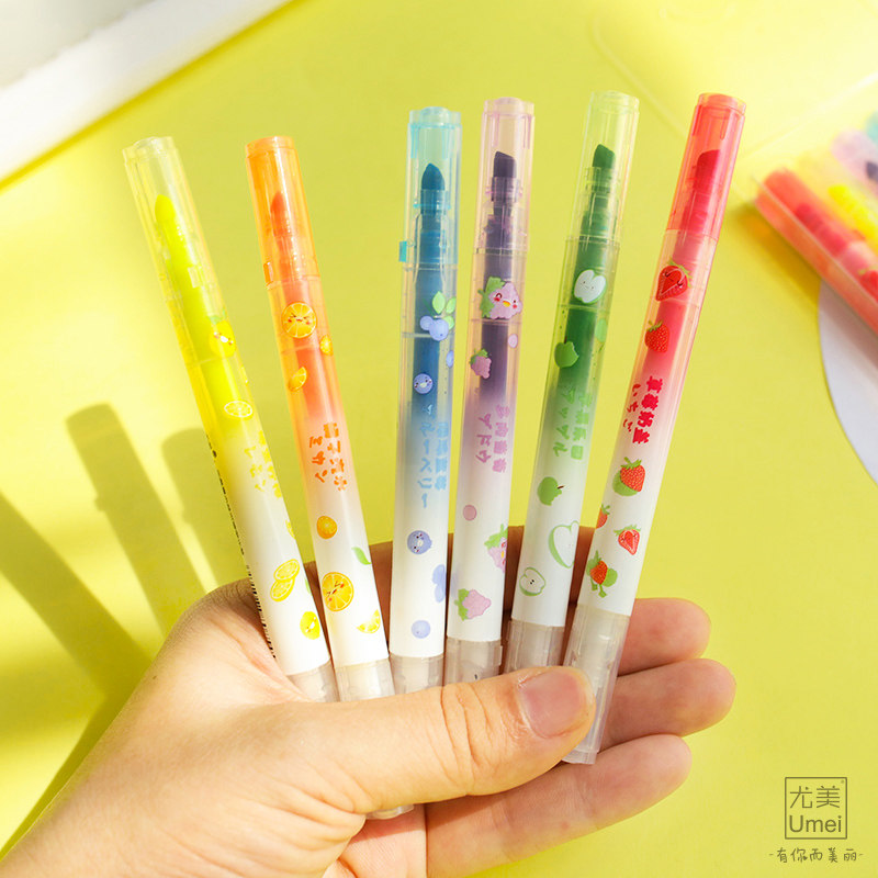 Double-head colorful fluorescent pen fluorescent marker fluorescent soft two-color pen 6-color pen head 6-color set students key mark graffiti DIY writing tool
