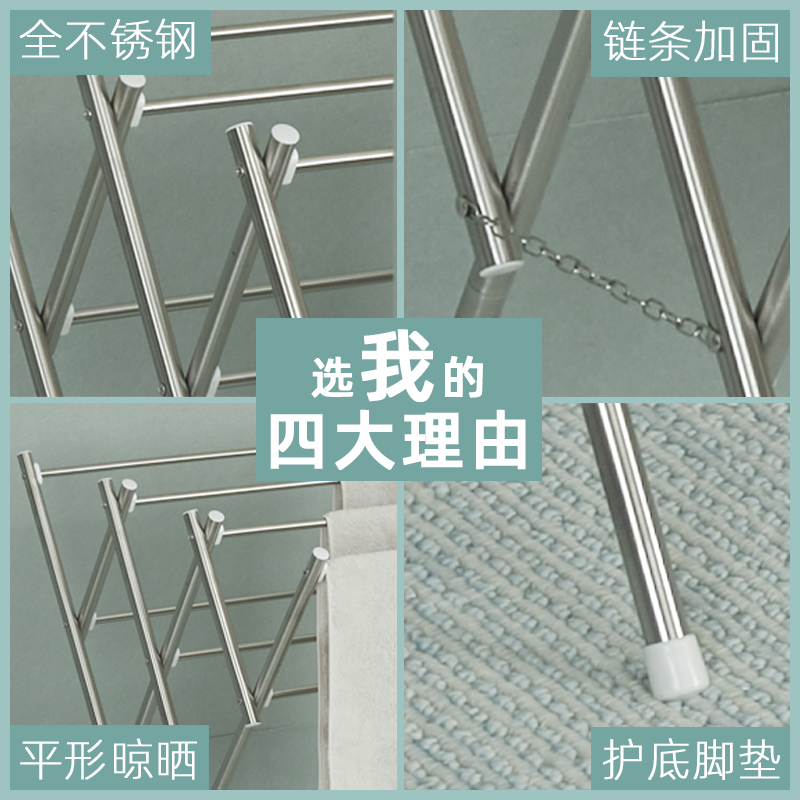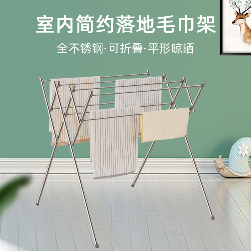Stainless steel towel rack clothes hanger floor folding indoor balcony retractable clotheshorse baby baby diaper frame