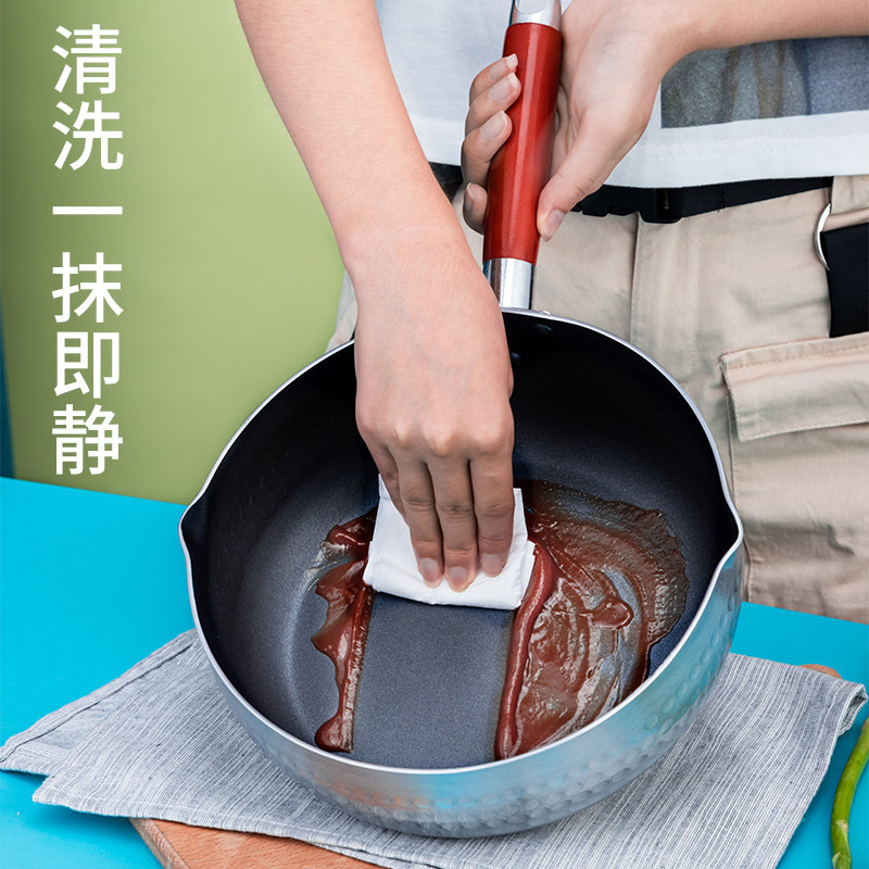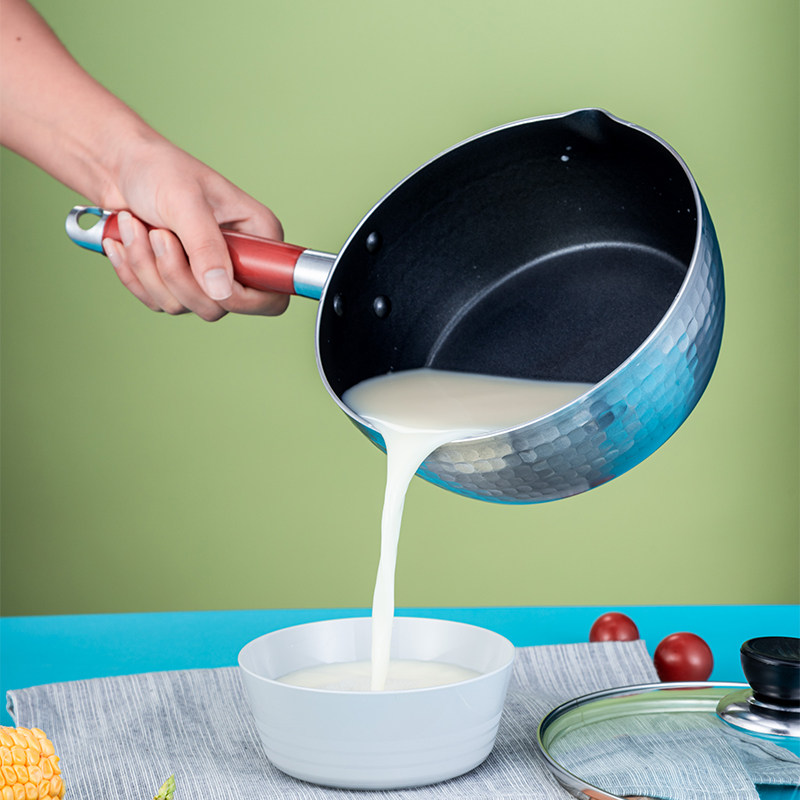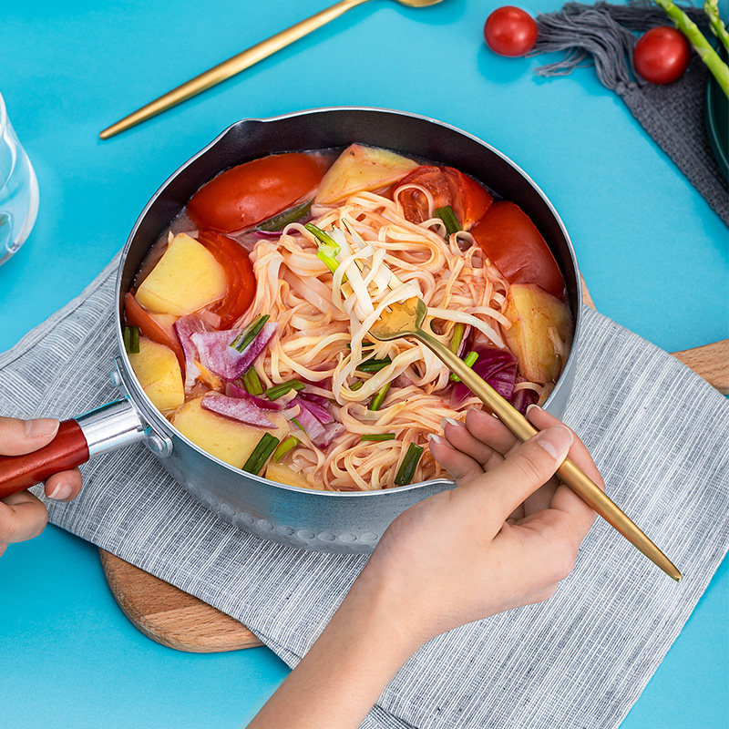 Non-stick snow flat pot Aluminum pot soup pot Noodle soup porridge milk soup powder Wooden handle hot powder pot Ramen pot Instant noodle pot Flat bottom