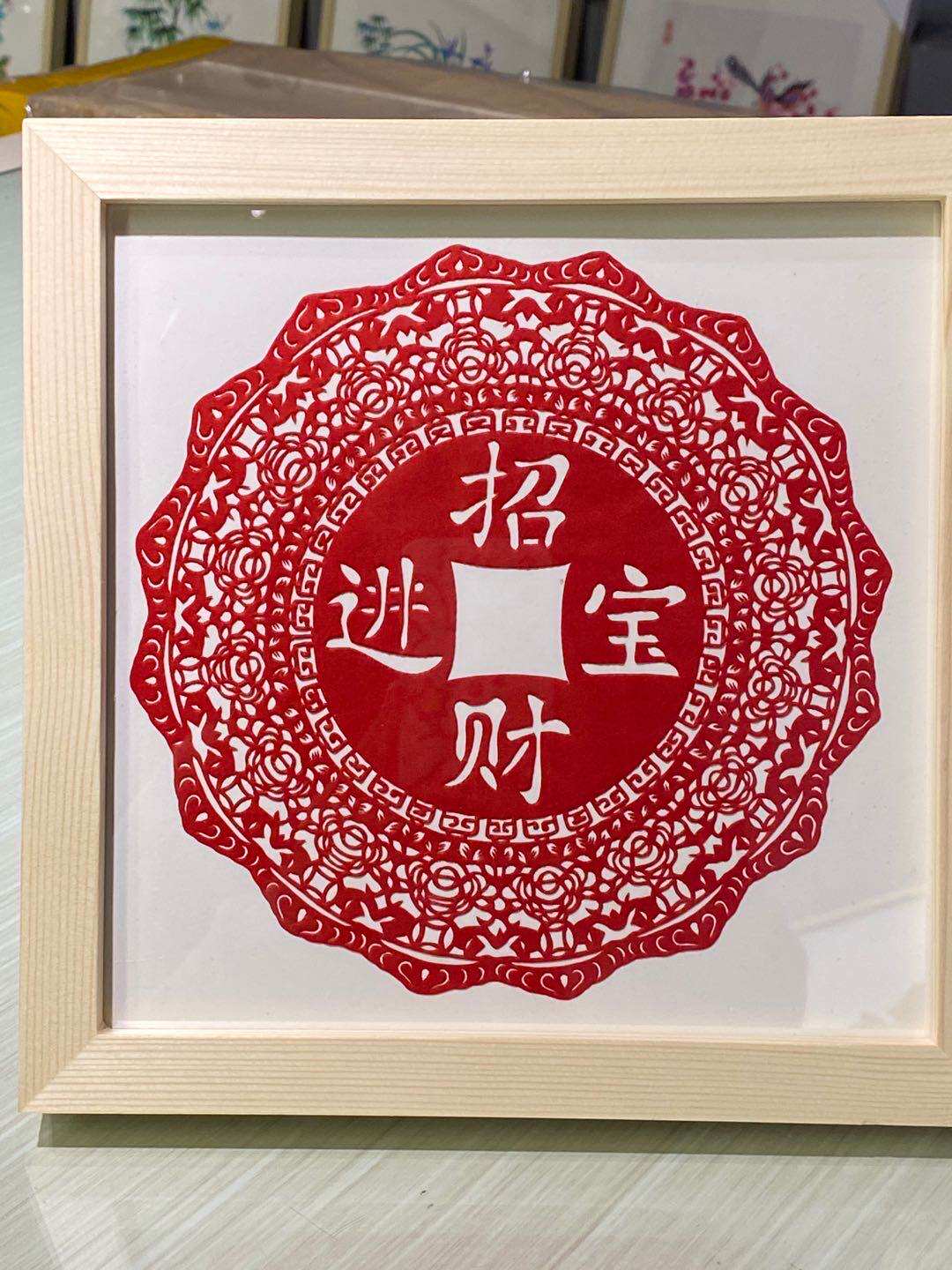 (Fuzhiyah)Characteristic handicrafts Weixian paper-cut lucky treasure Solid wood table home decoration gifts preferred