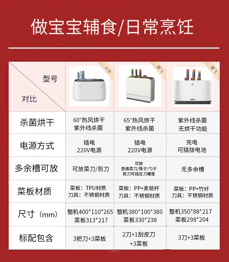 Plug-in (drying and disinfection) with 3-knife 3 cutting board plug-in (drying and disinfection) with 2 1 knife 3 cutting board charge (disinfection) with 3-knife 3 cutting board plug-in electric (drying and disinfection) red 2