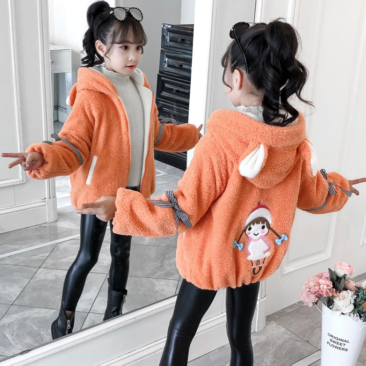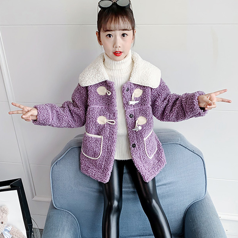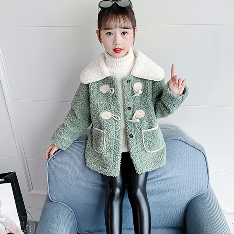 Girl Lamb Suede Jacket Autumn Winter 2021 New Foreign Pie Fur Integrated Middle Long Version Large Child Sweater Fur Coat