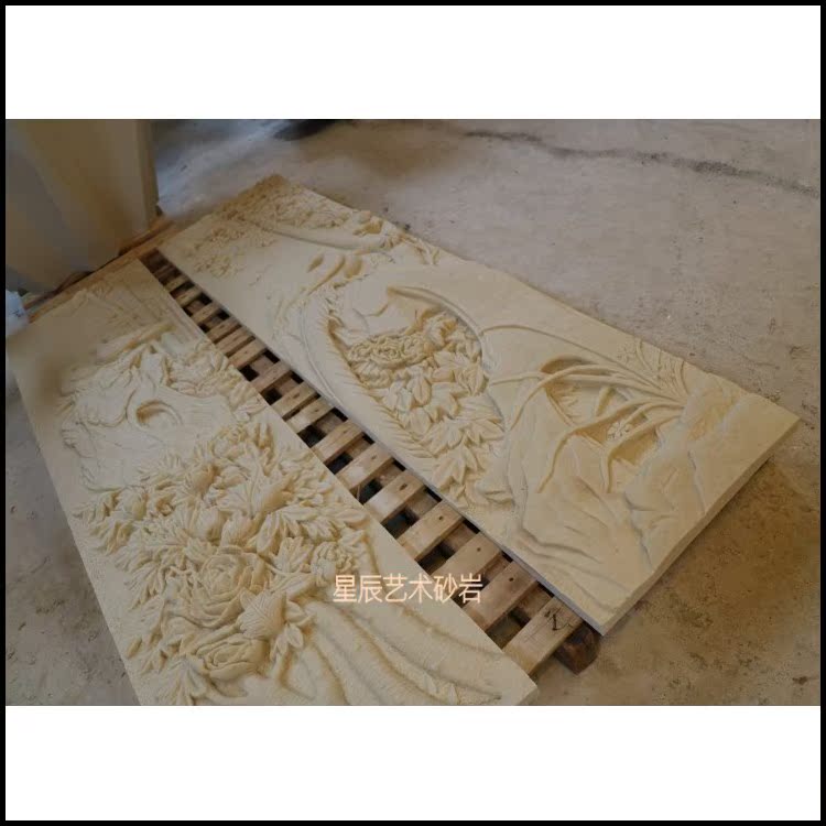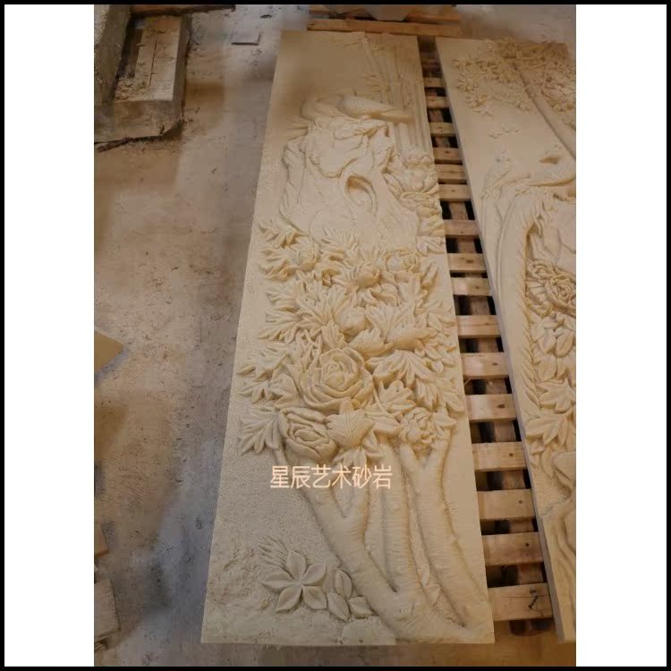 Sandstone Reliefs Glass Fiber Background Wall Chinese Villa Exterior Wall Landscape Relief Culture Wall Meranzhu Chrysanthemum Mural