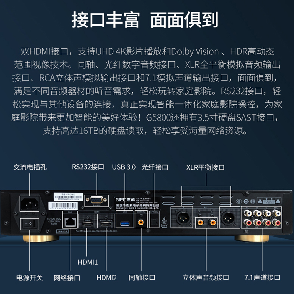 Jeko BDP-G5800 4K UHD Blu-ray Unplugged in the Dolby-horizon HDR HD Hard disc player Region