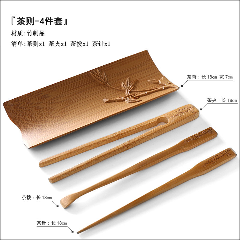 Tea is a three-piece set of pure handmade Japanese natural bamboo lacquerless tea is a tea spoon tea holder tea lotus carbonized tea set accessories