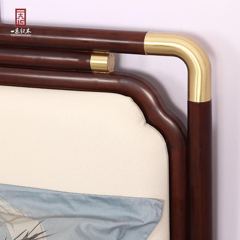 Yien mahogany solid wood bed hedgehog red sandalwood large fruit red sandalwood North American red cherry tenon and tenon double bed Ming and Qing furniture
