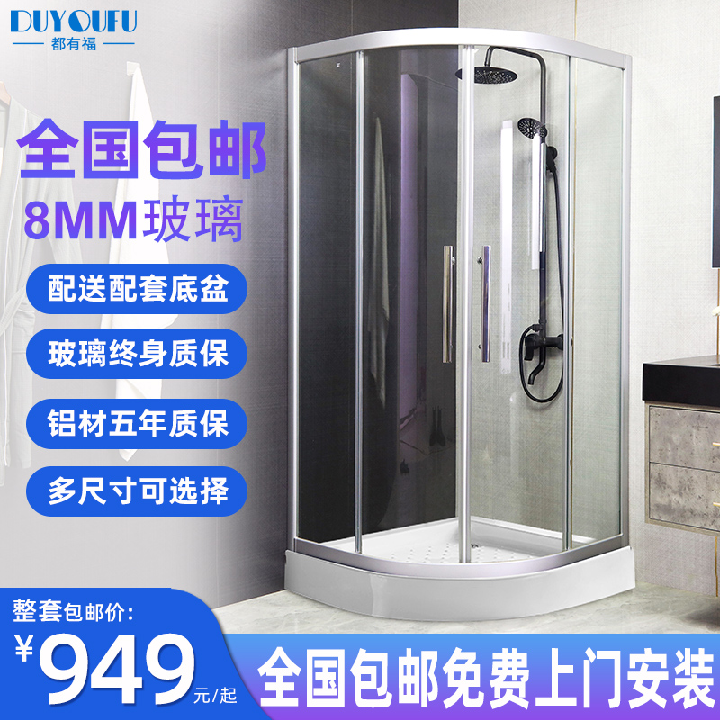 Shower room with potty integrated bathroom glass partition bath room arc fan shape simple rain room bath