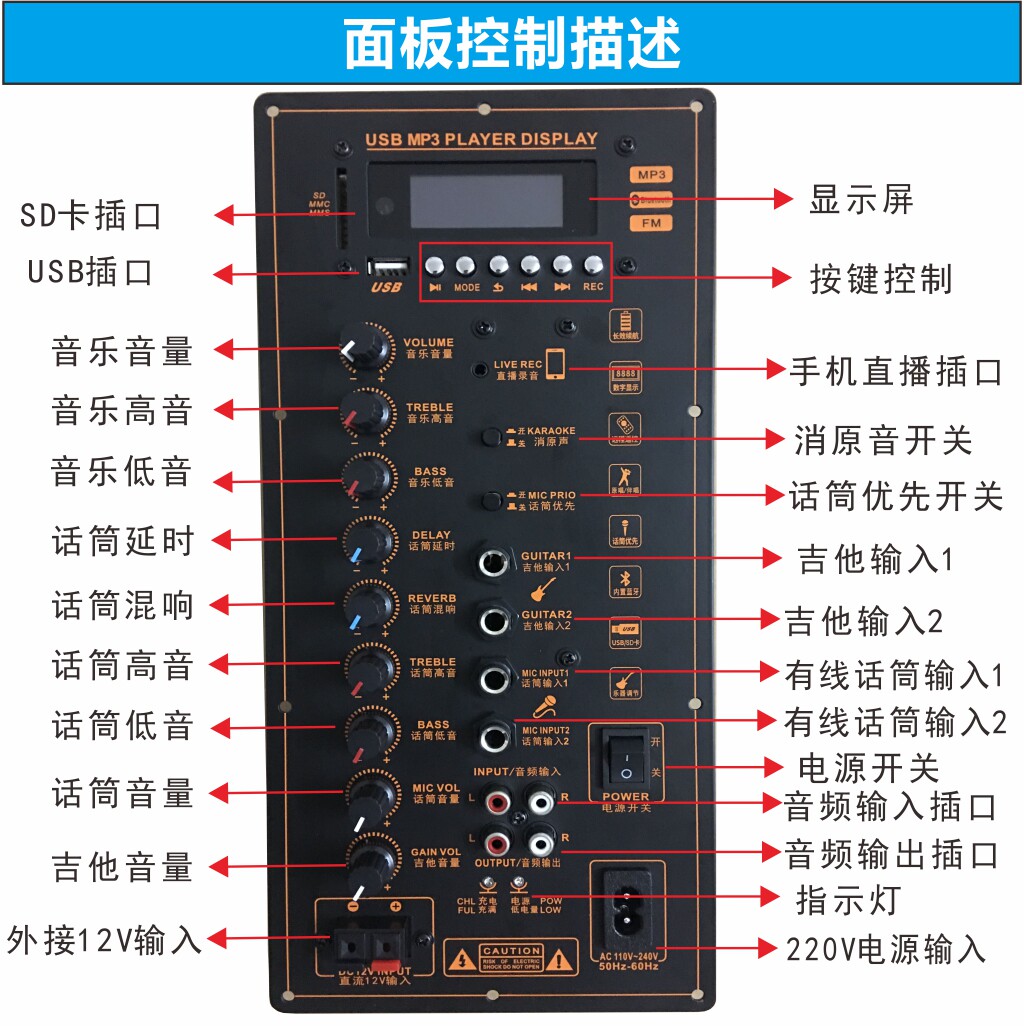 12V battery 220V high power square dance Bluetooth amplifier board Portable rod mobile speaker amplifier board