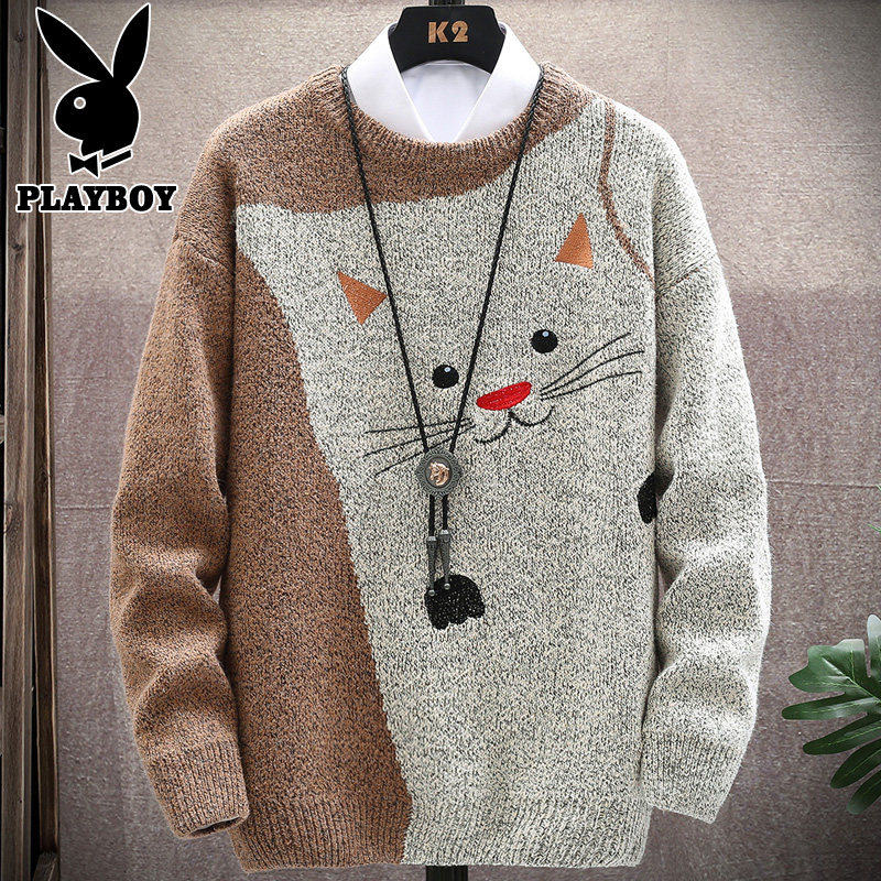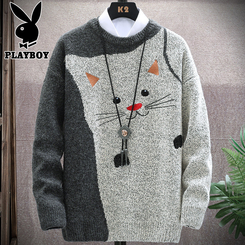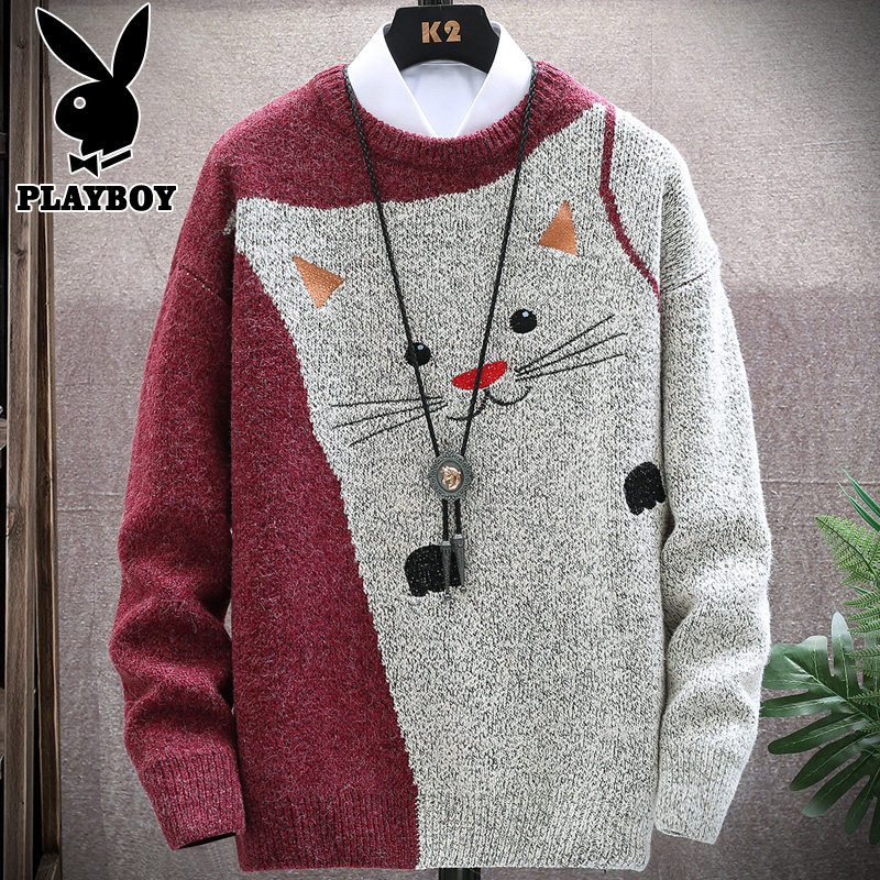 Playboy winter sweater men's top clothes winter clothes Korean version trend loose youth thickened knitted sweater men