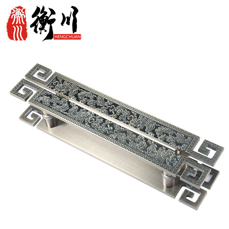 New Chinese style Xiangyun glass door handle Antique copper hotel foot bath private room Wooden door handle engraving on the custom