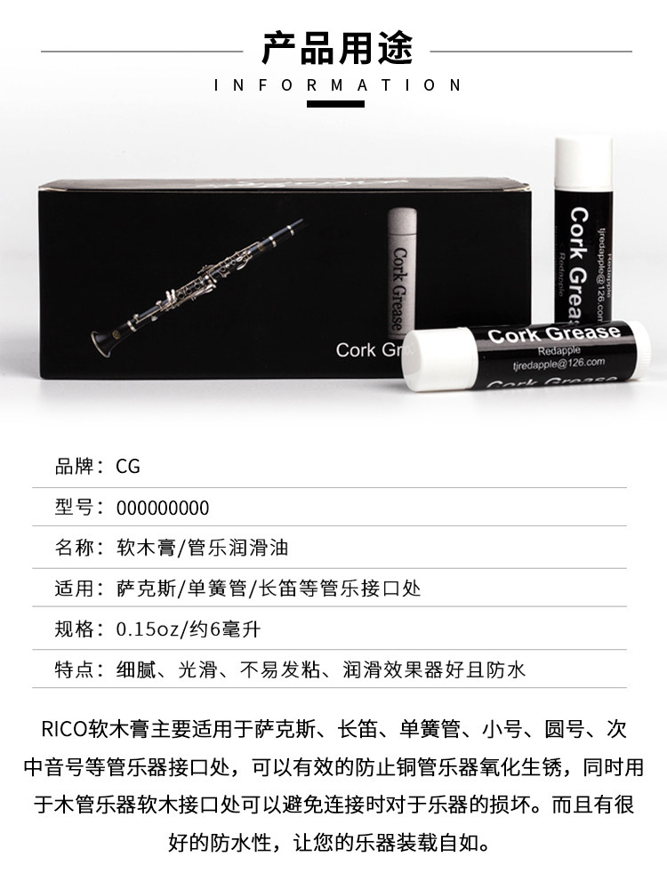 Sax Cork Cream Long Flute Clarinet Solid Oil Lube Black Pipe Connector Oil Copper Pipe Muster Accessories Universal