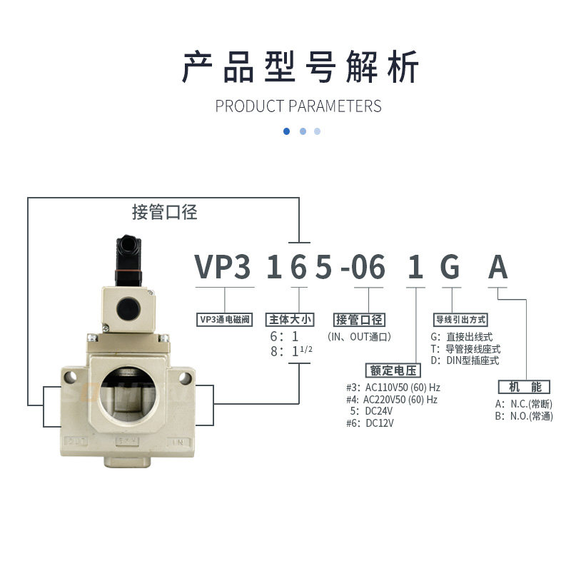 Large three-way socket-type solenoid valve VP3165 VP3185V-10 12 14 20DL DZ G AB vacuum