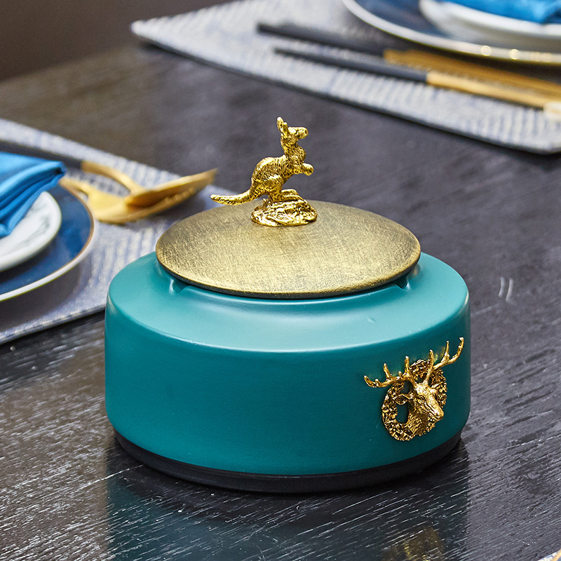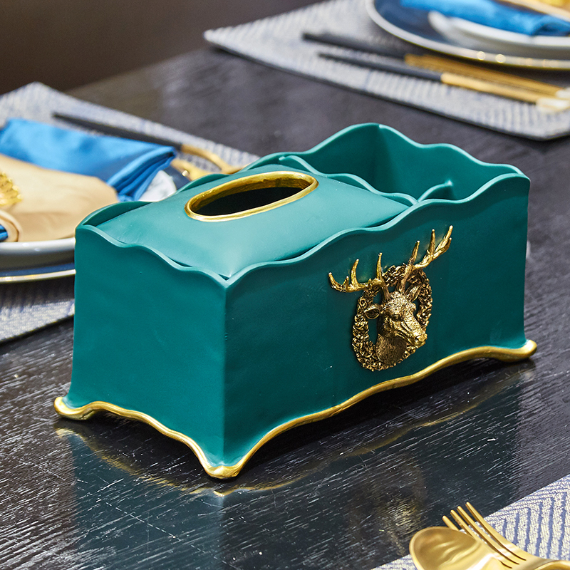 Home Living Room Gold Deer Resin Multifunction Paper Towel Box Remote Control Contained Nordic Home Ink Green Ashtray Furnishing
