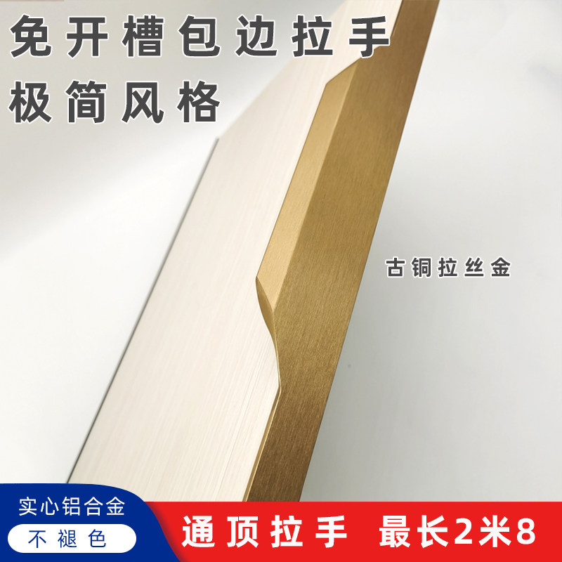 Slot-free bronze brushed gold seal edge to top lengthened seagull handle wardrobe door light luxury whole body thumb handle