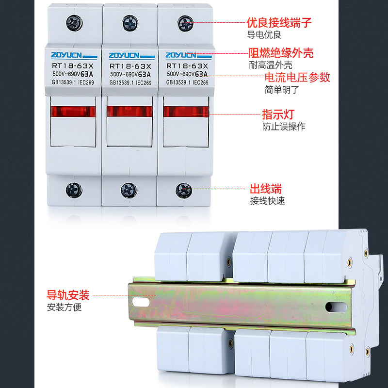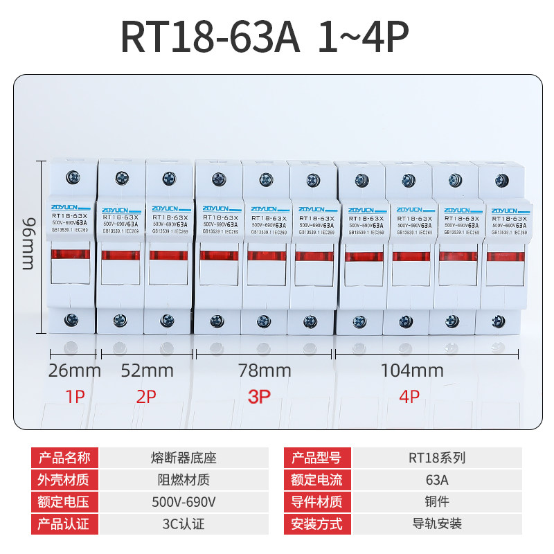 Zhongyu new RT18-63X fuse base with light rail type 14*51 fuse seat 1P2P3P4P